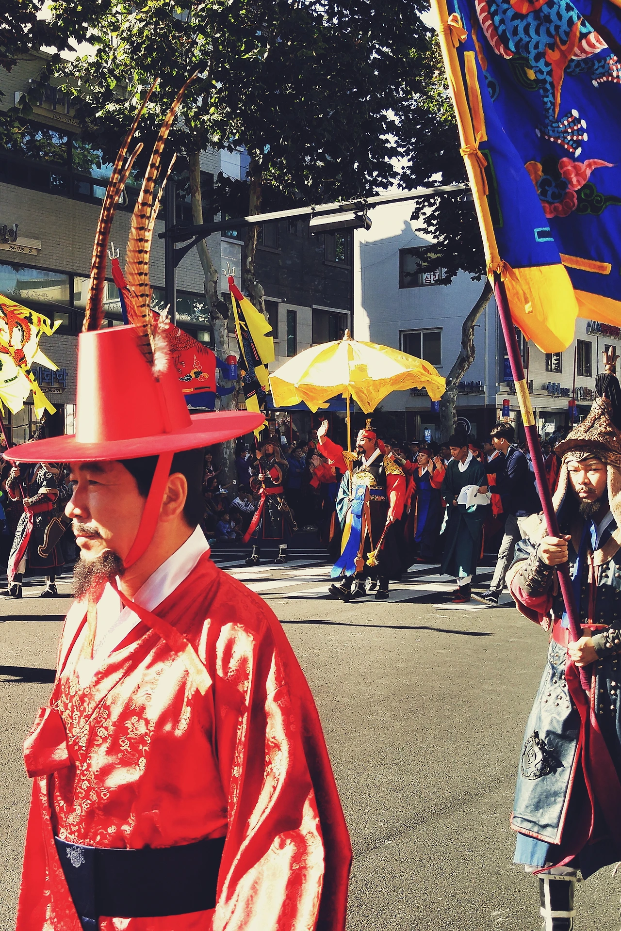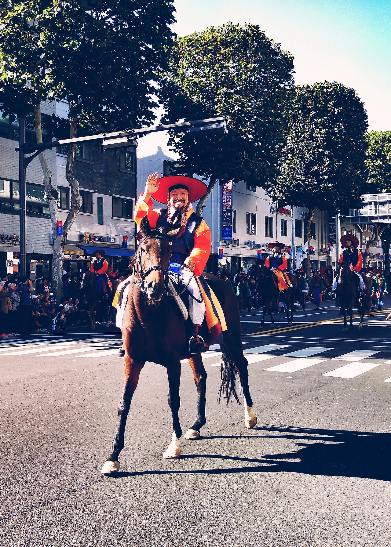 정말 많은 사람들이 능행차를 보기 위해 길가를 가득 메웠습니다. 처음에는 '무엇이기에 이렇게 많은 사람들이 행렬을 기다릴까?'란 의구심이 들었지만 행렬이 점점 가까워오며 장관을 이루는 모습은 의구심을 한 번에 날려버리기에 충분했습니다.