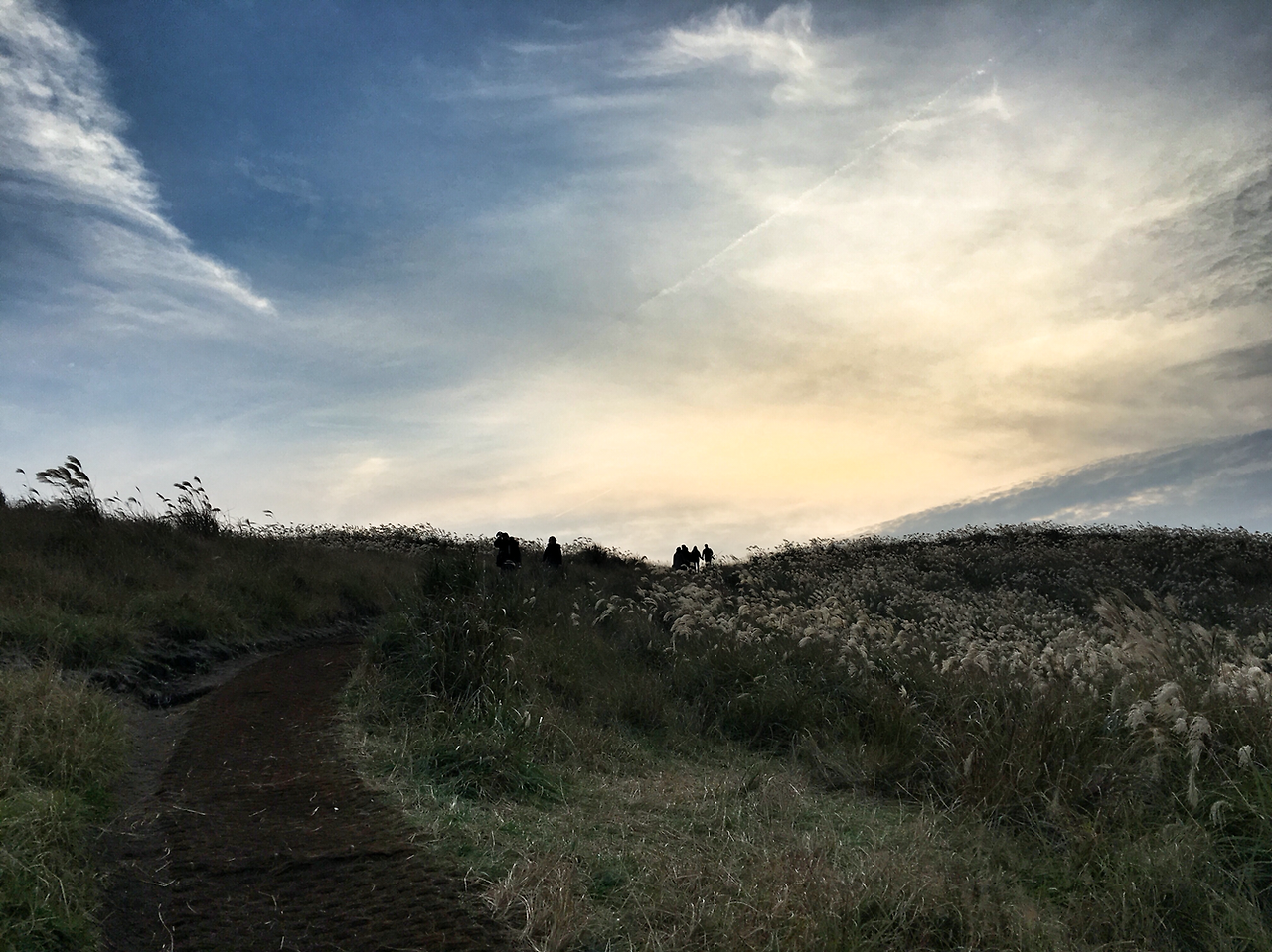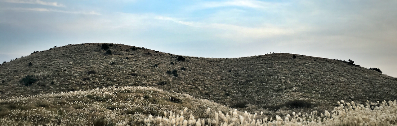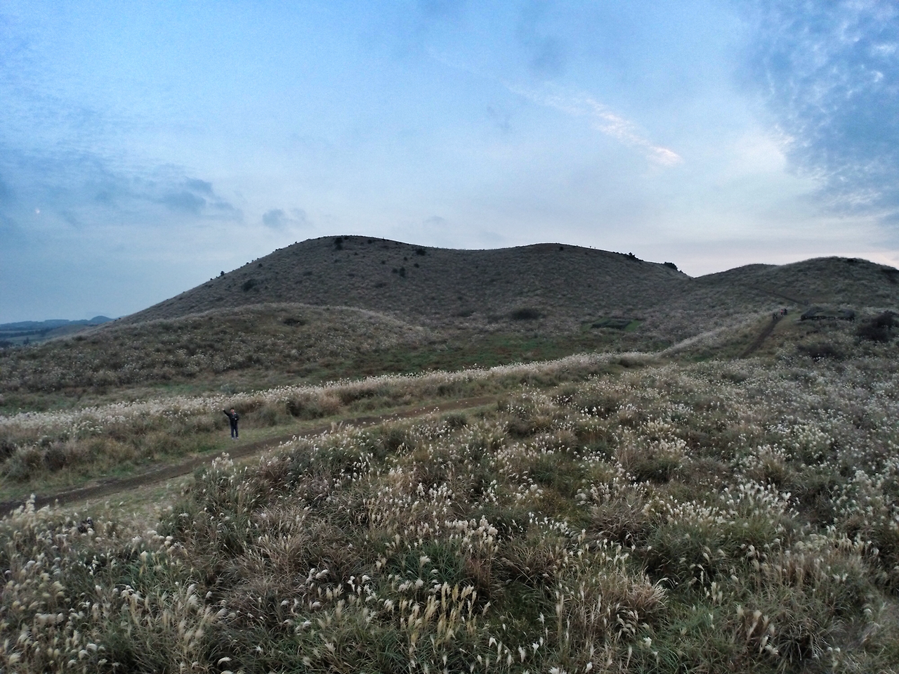 제주도 368개의 오름 중에 가장 아름다운 오름을 꼽으라면 많은 사람들이 용눈이오름을 이야기합니다. 오름에 큰 나무가 거의 없고 작은 나무들과 풀로만 이루어져 있어 오름의 곡선을 한눈에 볼 수 있고, 오름에 오르면 제주 동부 지역의 오름능선을 훤하게 내려다볼 수 있기 때문이 아닐까라는 생각이 듭니다.
