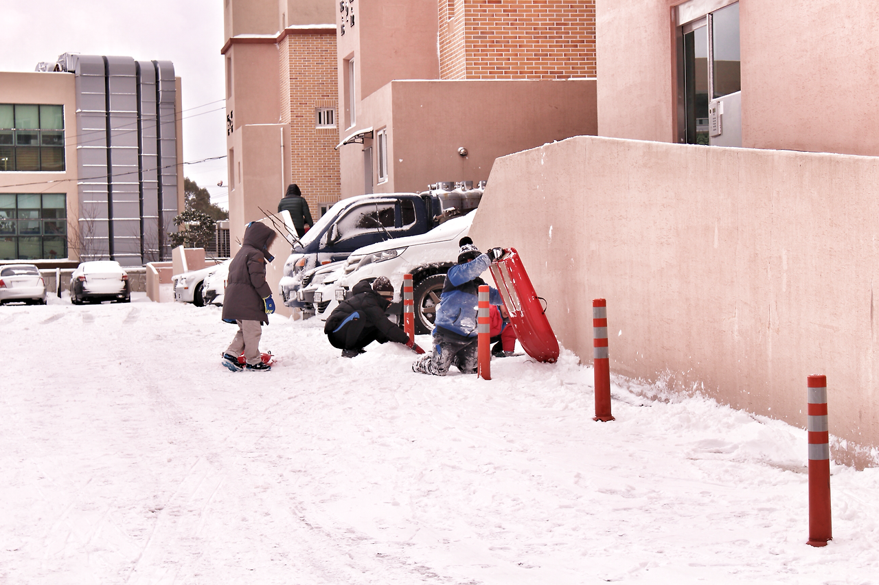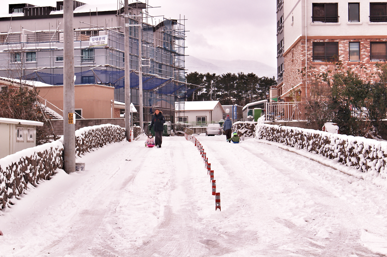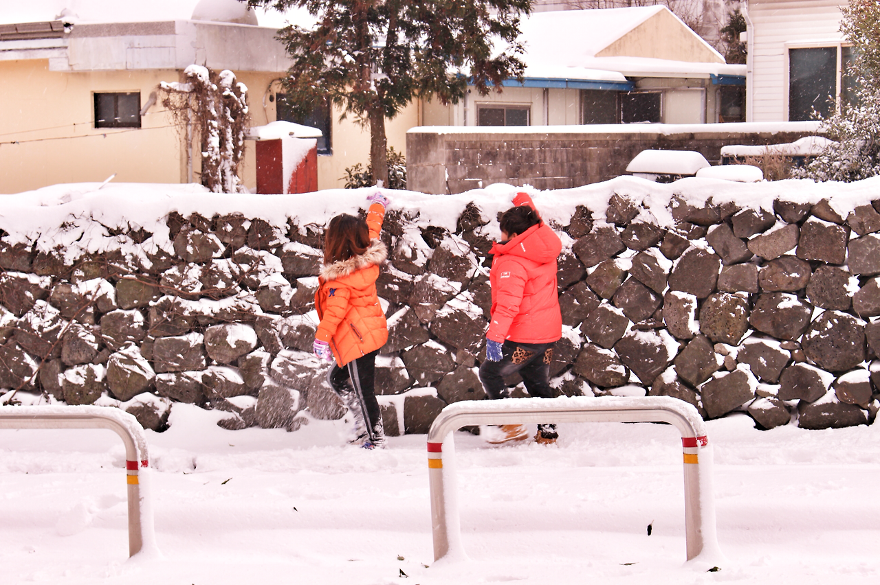 한파와 폭설로 인해 산간도로가 통제되고 제주공항이 폐쇄되는 등 고립된 섬이 되어버린 제주지만 그 안에서 또 다른 풍경을 만날 수 있던 것도 사실입니다. 적어도 아이들에겐 말이죠!