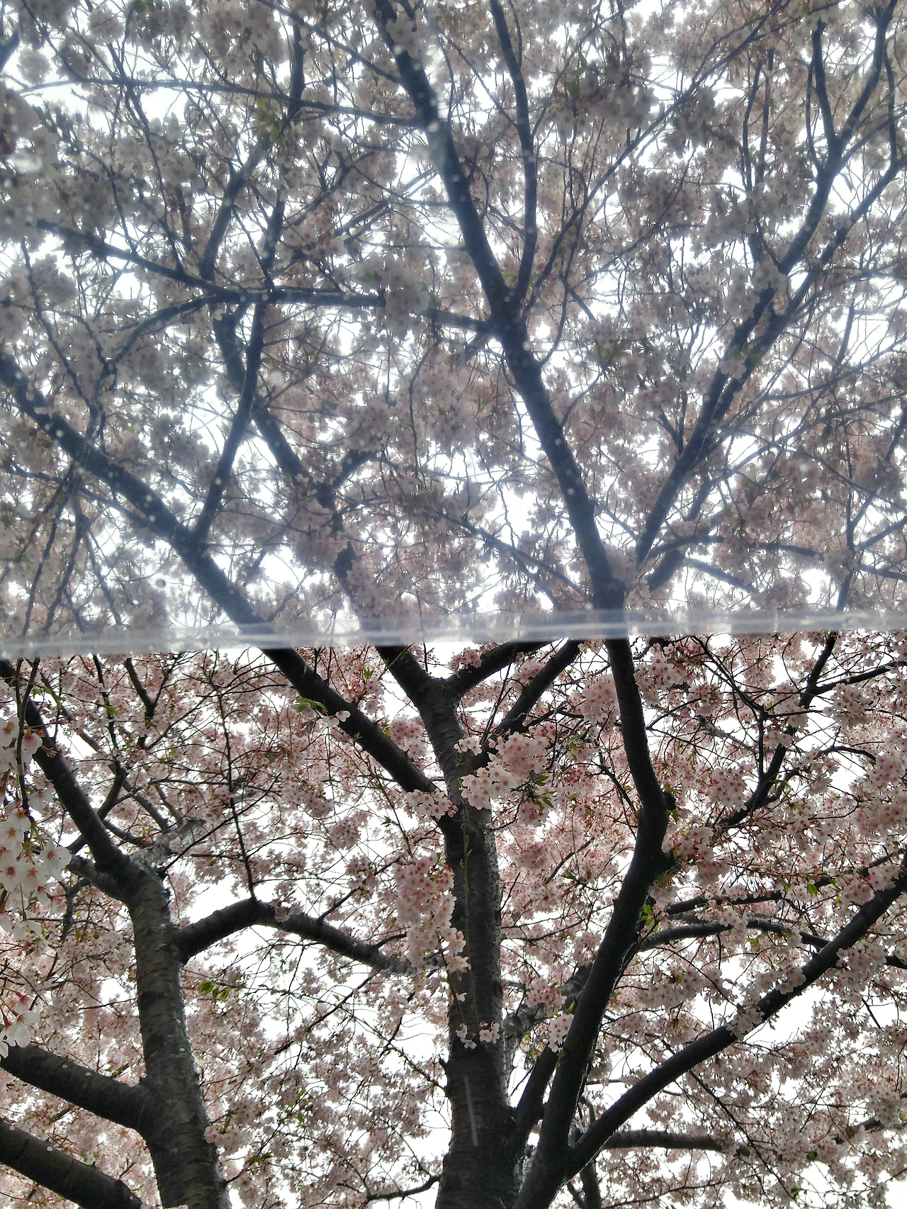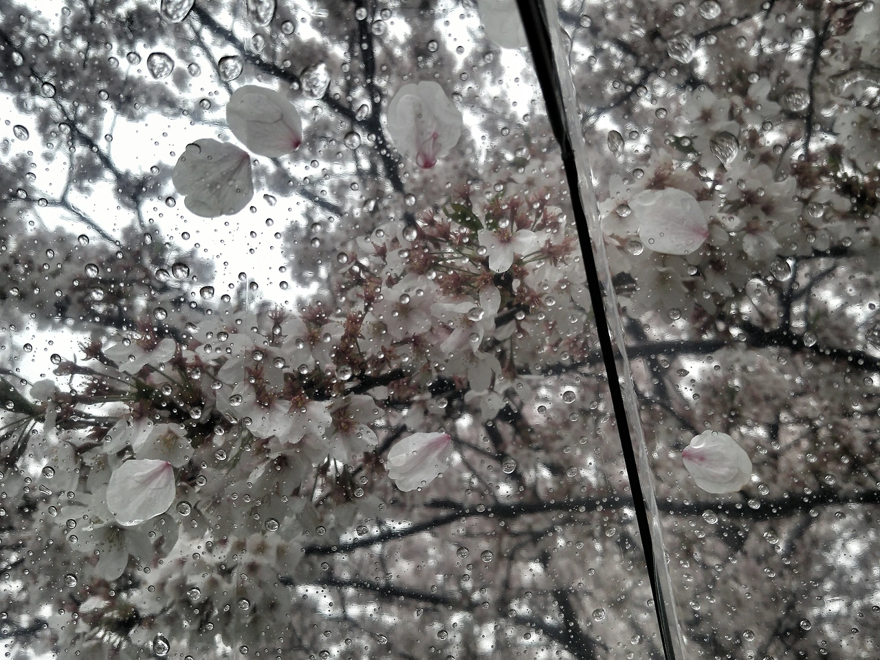 사진을 찍다 보니 떨어진 벚꽃잎이 우산 위에 살포시 내려앉았습니다. 이때를 놓치지 말고 함께 사진을 찍으니 마치 '비 오는 날의 수채화' 같은 느낌이 듭니다.