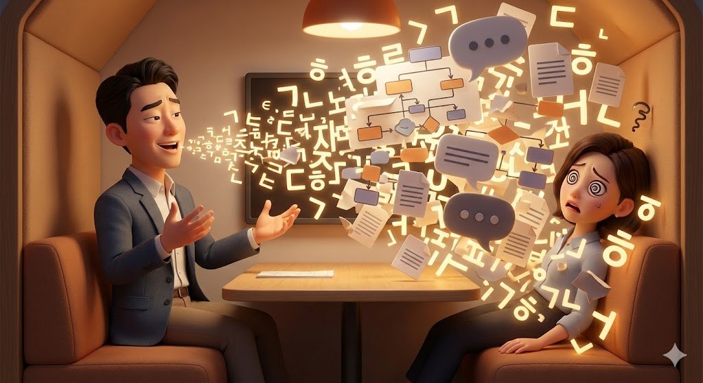 하지만 냉정하게 묻겠다. 그 말을 들은 상대방의 머릿속에는 무엇이 남았을까? 장담컨대, '혼란'과 '피로' 말고는 아무것도 남지 않았을 것이다.
