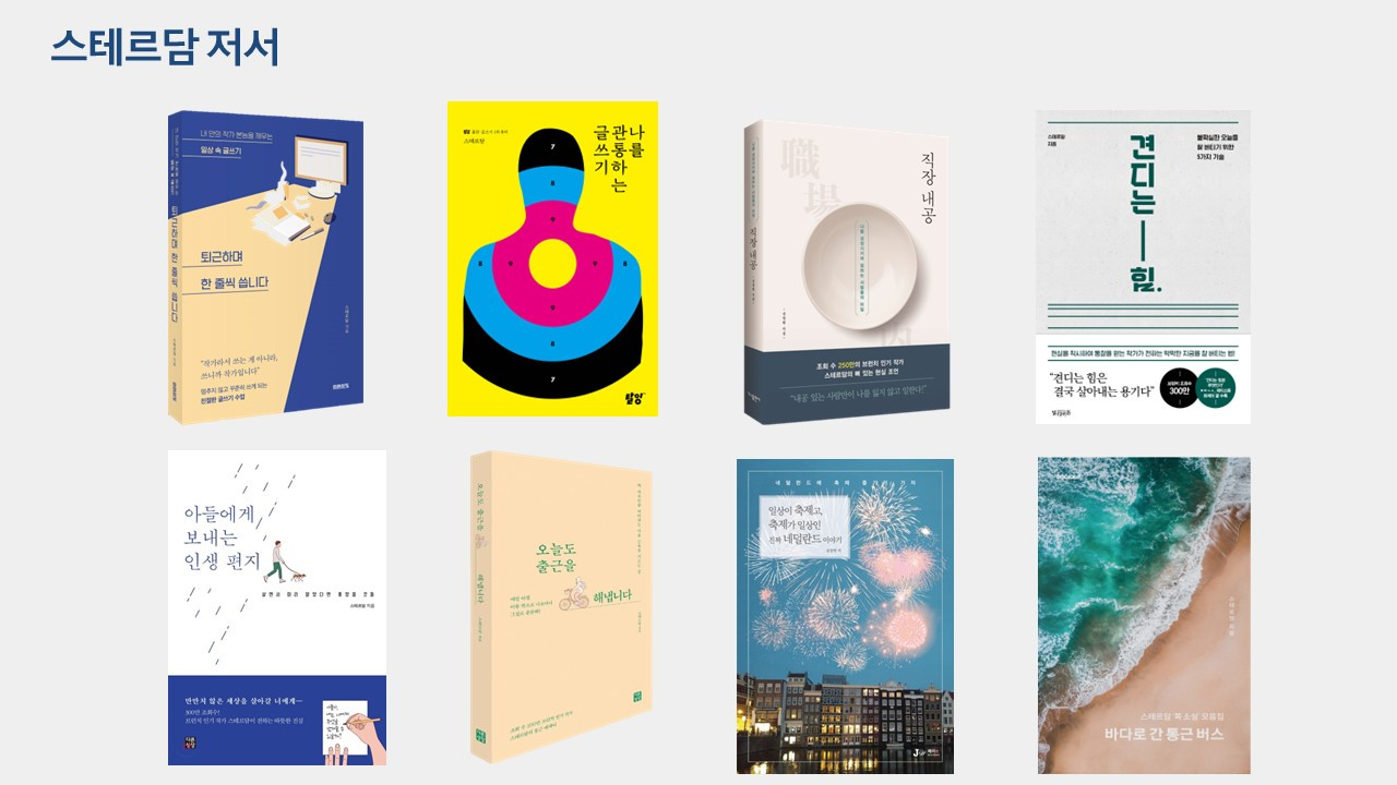책 <오늘도 출근을 해냅니다> 를 쓴 오늘도 출근하는 베스트셀러 작가 스테르담입니다. 직장인, 작가, 강연가의 페르소나를 쓰고 있습니다. 선하고 강한 영향력을 나누는 생산자의 삶을 지향합니다.