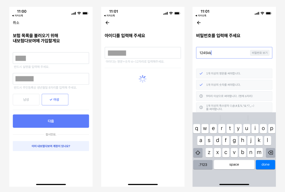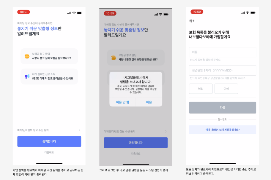 금융 데이터는 민감한 정보 중에 하나이기 때문에 번거롭지만 인증절차를 진행할 수밖에 없다. 그래서 가입과 인증에 신경을 더욱 많이 썼을 것 같아 프로세스와 화면설계가 궁금했다.