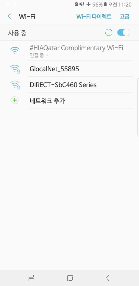 핸드폰 와이파이를 켜고 #HIAQatar Complimentray Wi-Fi를 잡습니다.