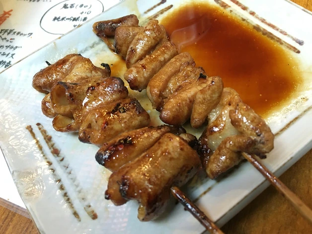 고기집에서 멀지 않은 곳에 위치한 닭꼬치집 [야**쿠]에서는 닭꼬치 오마카세 5종(850엔)! 카와(껍질/320엔), 레바(간/240엔), 그리고 규니코미(450엔)를 백종원이 추천했었죠. 생맥주도 좋지만, 방송에서 소개되던 우롱하이(420엔)도 시도해보세요. 영업시간은 평일 23시, 토요일 21시, 일요일은 20시까지니까 주의하세요.