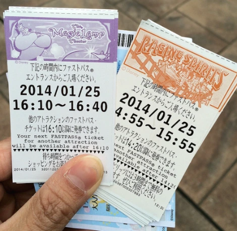 어트랙션을 타고 싶은데 긴 대기시간은 참을 수 없어! 디즈니리조트에서는 파스트패스를 꼭 활용하세요. 사전준비는 필요없고, 이용하고 자 하는 어트랙션 앞에 설치된 발권기에 입장권을 꽂아서 파스트 티켓을 받아요. 지정시간이 기재되어 있어 그 시간에 다시 찾아가면 적은 대기시간으로 어트래견을 이용할 수 있어요~!