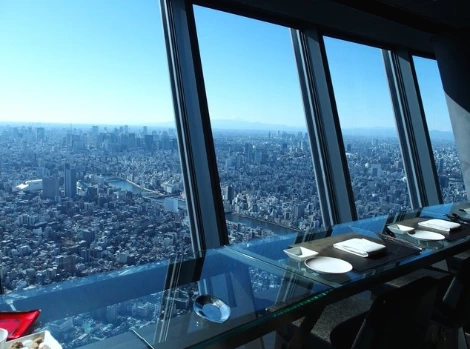 도쿄 스카이트리 345m지점에서 딱 트인 전망을 즐기면서 퀄리티 높은 특별한 점심식사를 즐길 수 있습니다. 프랑스요리와 일본의 식재료, 기법을 사용한 코스요리로 신혼부부를 위한 특별한 추억으로 간직하세요. 레스토랑은 사전예약제로 출발 전에 예약해드렸습니다.