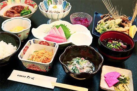 요론섬의 중심가라고 할 수 있는 '차바나'지역. 관광안내소나 슈퍼마켓, 식당이 많은 동네죠. 숙소에서도 가까워요. 저렴한 가격에 푸짐한 정식을 맛볼 수 있는 가정적인 식당으로 가보세요. 추천할 메뉴는 돈고츠정식! 돈고츠라멘의 돈고츠가 아니라, 가고시마에서는 돼지고기를 푹 삶은 부드러운 고기가 바로 돈고츠입니다!