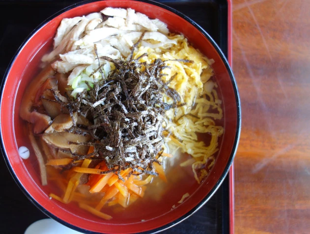 해변을 전망할 수 있는 소박한 식당에서 케이한을 드셔보세요. 케이한은 직역하면 '닭고기밥'으로 밥에다가 닭고기살, 파파이야 등의 건더기가 올라가는데 닭고기 육수가 듬뿍 들어간 국밥 같은 음식입니다. 타 일본지역에서도 잘 못 먹는 가고시마의 향토요리입니다.