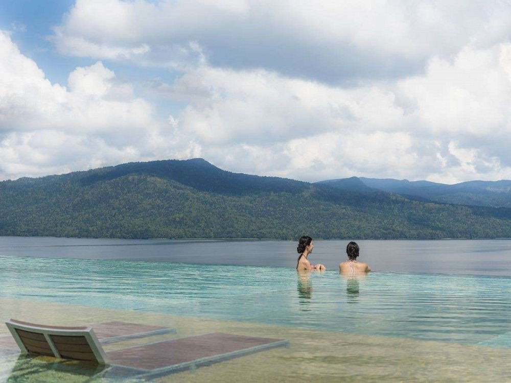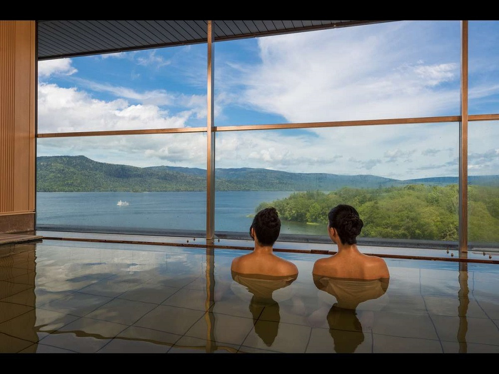 이 리조트호텔의 자랑은 아칸호를 전망하는 온천시설, 그리고 다른 시설에는 없는 옥상에 있는 가든스파입니다. 수영복을 착용하고 이용하는 스파에서는 부부끼리도 이용할 수 있어요. 석식을 먹기 전에 이 옥상가든스파에 석양을 보러갈까요. 아마 이곳에서 본 풍경이 부부에게 또 하나의 잊지 못하는 풍경이 될 수 있을 것 같아요.