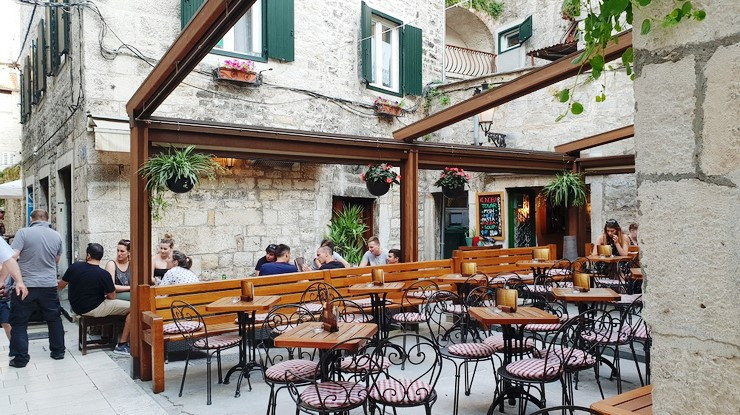 디오클레티아누스 궁전 터는 4개의 성문 안에 자리하고 있답니다. 그리고 성문 안는 구시가지를 이루고 있고 대부분 유적이 없어진 곳에는 노천카페와 숙박시설이 들어서 있어요. 기왕이면 궁전이었던 곳에서 마지막 스플리트에서의 식사를 해봐요. 왕의 식사가 될 수도 있잖아요.