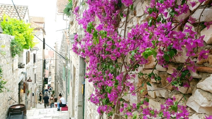 흐바르 구시가지의 골목길 풍경은 단연 으뜸이 아닐까 해요. 깔끔한 돌벽과 돌길로 정돈된 골목에는 길고양이를 위한 방석이 놓여 있고 어딜 가나 쉽게 발견할 수 있는 루프탑 레스토랑은 꼭 들러보고 싶은 욕구를 자아낸답니다. 담벼락 담쟁이덩굴 꽃들은 그대로 한 폭의 그림이 되고 골목길을 돌면 어떤 표정의 다음 골목이 기다리고 있을지 궁금증을 자아내기에 충분해요. 밤이 깊어지면 낮과 달리 흥에 겨운 거리로 변한답니다. 숙소도 가까우니 오늘 저녁은 신나게 즐겨봐요.