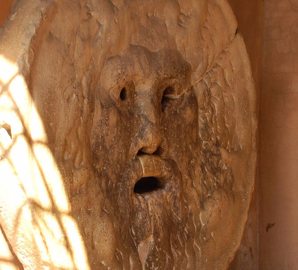 원래 배수로 덮개로 사용된 이 대리석 조각은 열린 입을 가진 커다란 얼굴이 새겨져 있는데, 대리석 입모양에 손을 넣고 진실을 말하지 않는 사람은 손이 물린다는 미신은 오랫동안 많은 사람들의 호기심을 자극하였습니다. 영화 '로마의 휴일'의 명장면이 이곳에서 촬영되었고 매년 많은 방문객이 이곳을 찾아와 영화속 장면을 따라하기도 합니다.