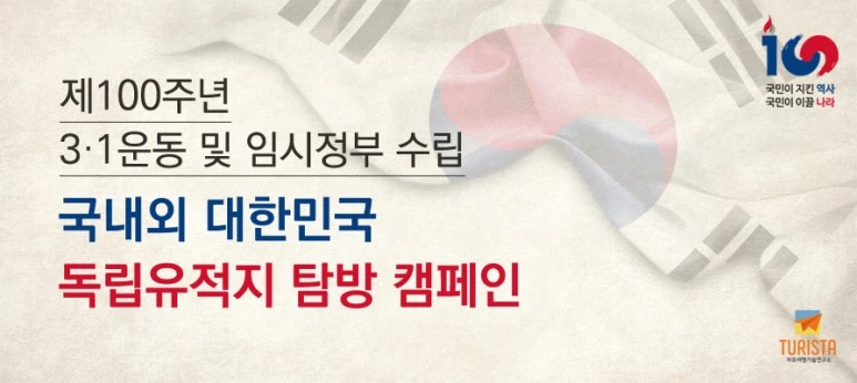 의미 있는 100 주년을 맞아 자유여행기술연구소 투리스타는 한국 홍보 전문가 서경덕 교수님과 함께 '해외 독립운동 유적지 탐방' 캠페인을 진행하고 있습니다.