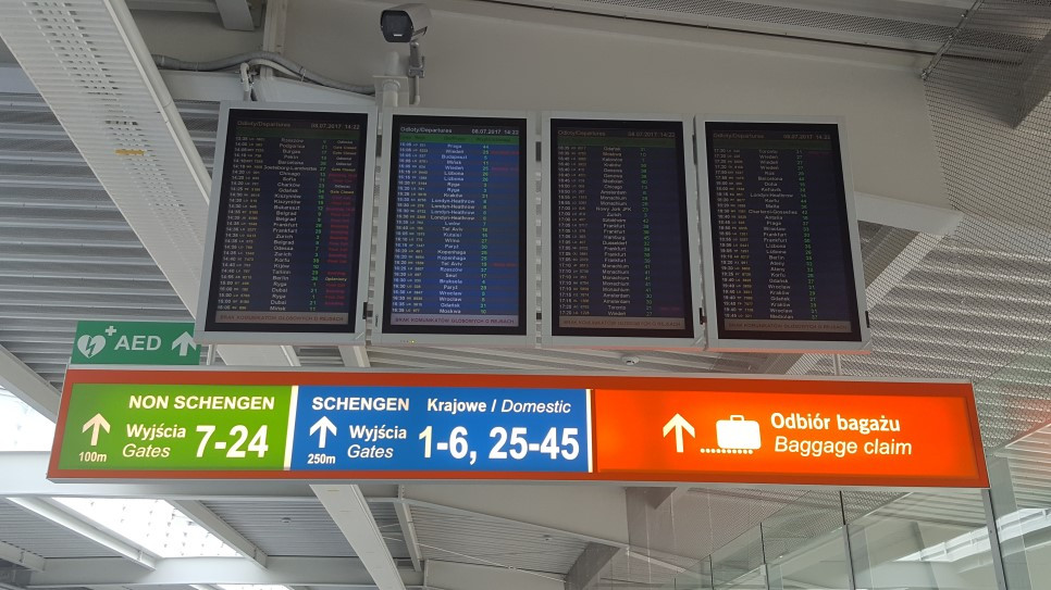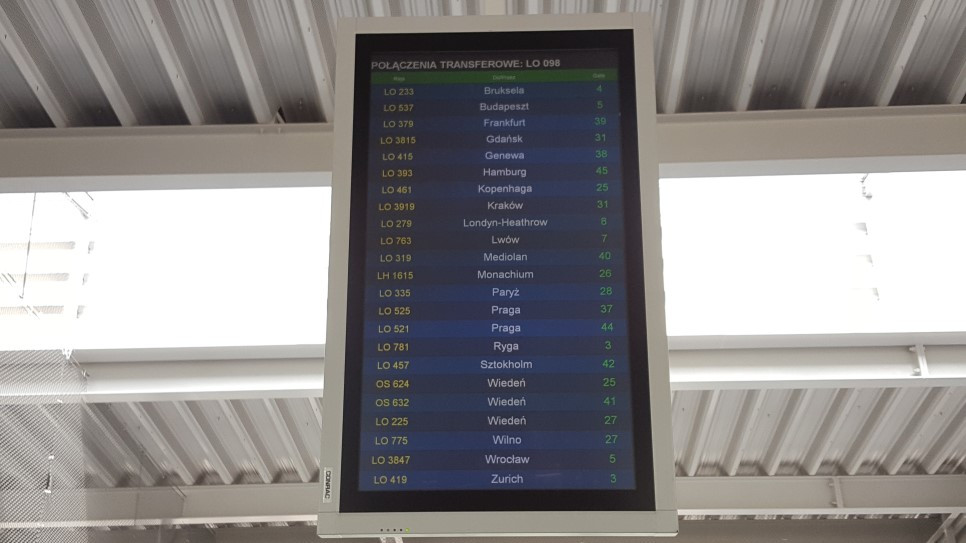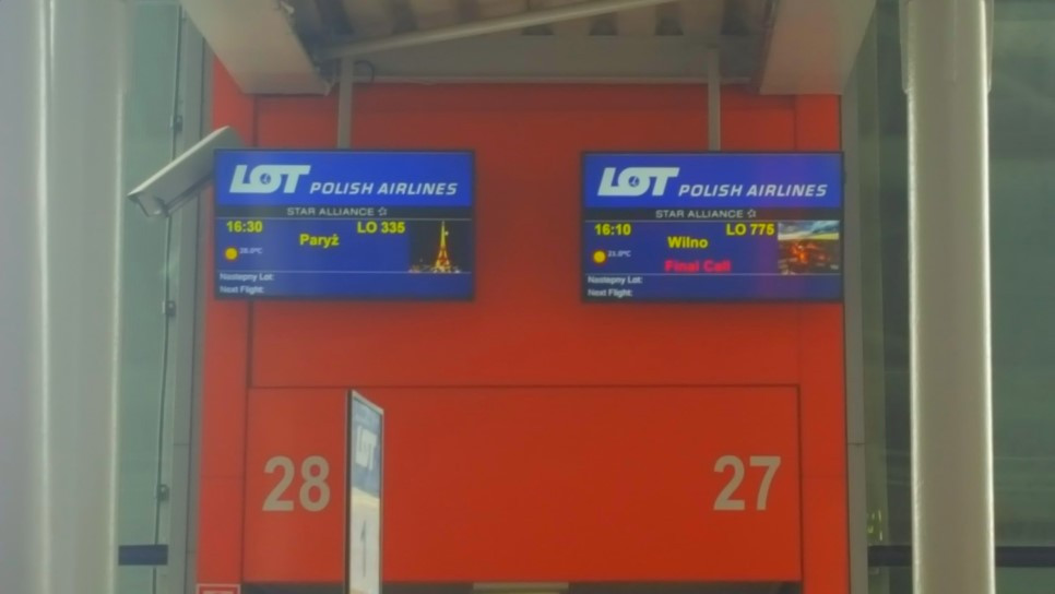 어느정도 나오면 위와 같이 전광판이 나옵니다. 그럼 다음 목적지로 갈 항공 편명,목적지,게이트를 보면 되는데요. 저같은 경우는 LO335 Paris 로 나와야하는데 Paryż 라고 보이죠?? 폴란드어로 나옵니다. 그러나 당황하지 마세요!