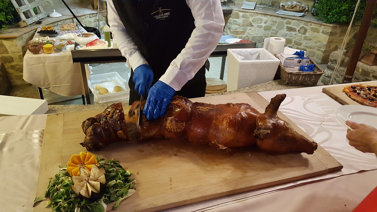 새끼돼지 통 구이 요리로 세고비아 지방의 전통음식입니다. 많은 사람들이 세고비아에는 로마 수로교와 동화속에서만 존재할 것 같은 알카사르를 보러간다고 생각하겠지만 실제로는 코치니요 아사도를 맛보기 위해 간다고 해도 과언이 아니랍니다. 구워져 나온 새끼돼지를 보면 불쌍하고 미안한 생각에 탐욕스러운 식욕을 원망하게 되지만 코치니요 아사도를 입에 넣는 순간 그런 고민은 말끔하게 해소가 되죠. 기름기는 빠진 바삭한 겉 껍데기와 육즙이 살아있는 부드러운 속살이 꽤나 조화로운 음식입니다. 여기에 곁들이는 와인 한잔~ 빠질 수 없겠죠?
