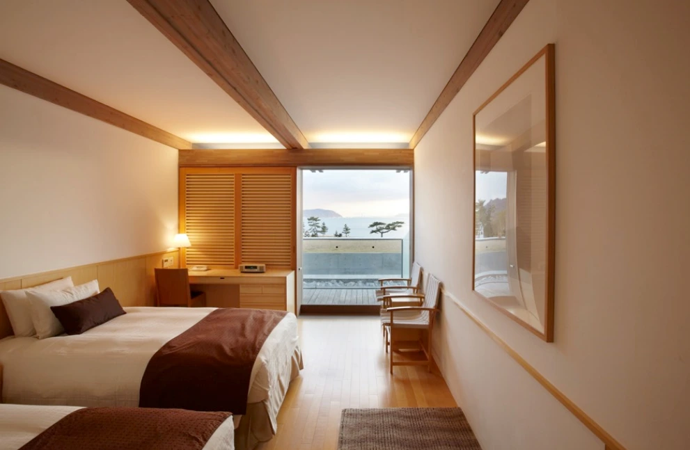 나오시마에는 숙박시설이 많지 않습니다. 민박, 게스트하우스가 많은 가운데 유일하게 나오시마 특색을 살린 호텔이 바로 '베넷세하우스'인데요, 몇 개월 전인데도 예약하기 어려운 곳이기도 합니다. 단, 나오시마 미술관들이 주로 휴관하는 월요일은 예약할 수 있는 경우가 있어 예약이 늦은 분은 월요일에 호텔을 이용하는 것도 방법입니다.