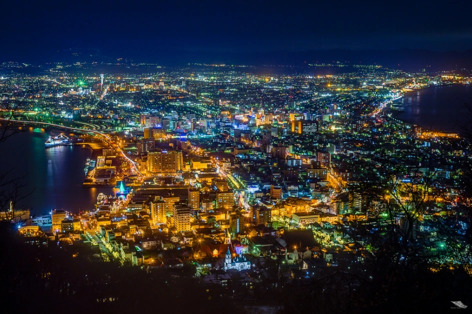 별모양으로 설치된 해자가 특징적으로 수많은 역사의 무대가 된 특별사적 고료카쿠 터. 그 해자를 겨울 기간동안 일루미네이션으로 장식해 17시~20시 아름다운 별모양의 야경을 볼 수 있습니다. 고료카쿠타워 전망대에서 내다보는 별 모양이 가장 아름다워 겨울에 하코다테에 가면 꼭 보고 와야할 야경 중 하나입니다.