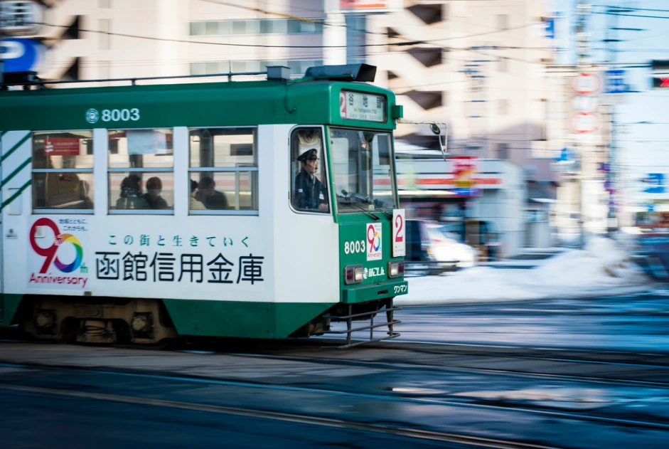 하코다테 시내를 이동하기에는 노면전차가 편리하고 좋습니다! 하코다테역을 중심으로 거의 모든 관광명소와 연결되어 있어요. 하코다테역앞 정류장에서 다음 목적지 모토마치까지는 노면전차로 약 7분! 시내 도로 위를 달리는 노면전차를 즐기면서 잘 활용하세요~!