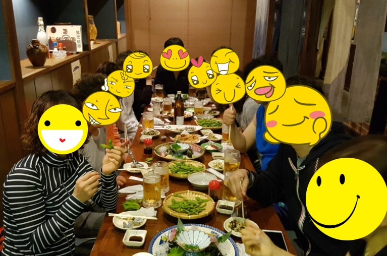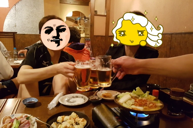 호텔에서 도보 5분거리에 있는 이자카야에서 저녁식사를 합니다. 이곳 또한 사전에 예약해놓았죠. 단체로 이용할 경우에는 방을 쓰는게 좋아요. 밥도 먹고, 안주도 먹고, 생맥주&사케도 마음껏 먹고! 한 동호회 회원끼리 해외에 나가보니 더 팀의 단단해지고 똘똘 뭉치게 된 것 같았어요. 2차는 호텔 식당을 빌려 새벽까지 술파티를 벌였다는...