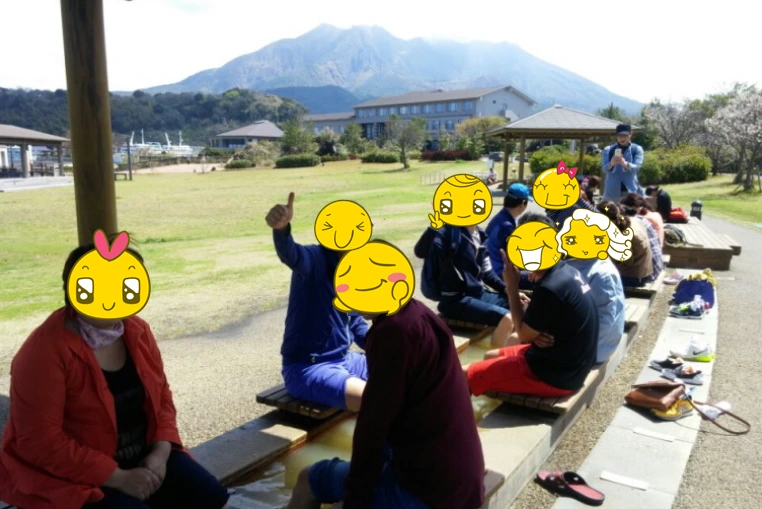 사쿠라지마에 도착! 맨 처음에 비지터센터로 가서 기본적인 사쿠라지마 개요를 알아가요. 그리고, 천연온천이 흐르는 긴~ 족욕탕에 발을 담그고, 용암과 화산재로 덮힌 산책길을 걸어요. 화산이 더 가까이 보이는 전망대에 가서 기념사진을 찍어요. 화산이 터졌으면 좋았을텐데 이날은 안 터졌네요. 화산이라고 걱정마세요. 가고시마에서 분화는 없으면 안되는, 오히려 흔한 일상의 모습입니다.