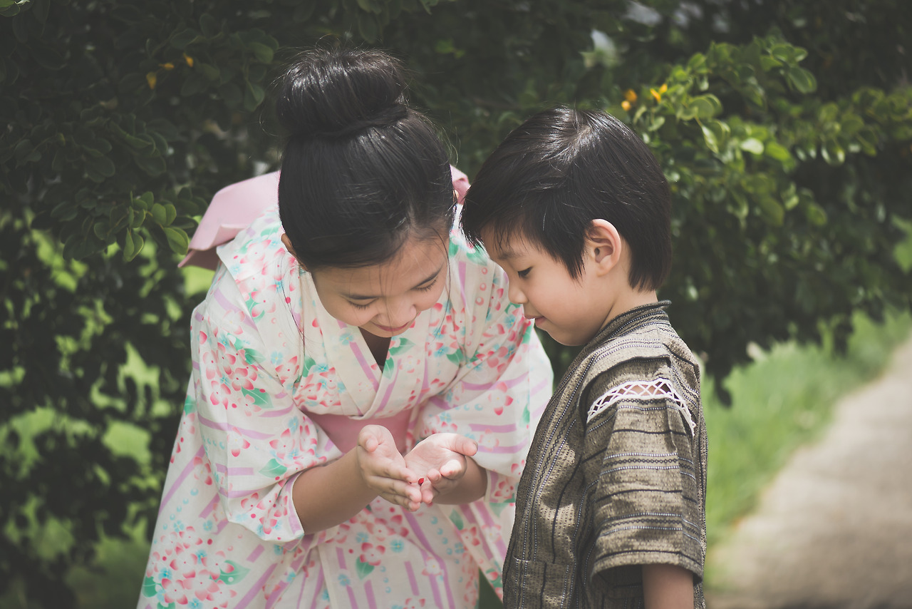 유카타 안에는 속옷을 입어주세요. 오른쪽, 왼쪽 순서로 옷을 여밉니다. 그리고 띠를 허리에 감싸고 몸 앞쪽에서 묶어줍니다. 여성은 허리에서 묶는 것이 예쁘고, 남성은 골반주변에서 묶는 것이 예뻐요. 띠를 묶는 방법은 자유! 추운 계절에는 겉옷(하오리)이 준비되어 있으니 그 위에서 입어주면 됩니다. 유카타를 예쁘게 입는 방법은 밑이 벌어지지 않도록, 가지런하도록, 옷깃이 벌어지지 않도록 입는 것이 좋습니다.