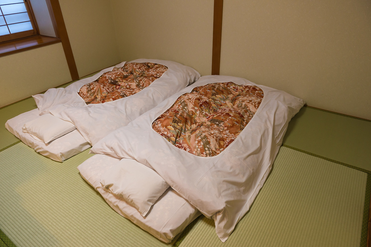 식사처에서 석식을 먹고 객실에 돌아오면 나갈 때는 없었던 이불이 완벽하게 세팅되어 있습니다. 식사시간에 직원이 이불을 세팅하고 간 것인데 아주 일반적인 료칸문화입니다. 이불을 세팅하러 직원이 들어올 수 있기 때문에 객실을 너무 어지럽히면 부끄러워요.