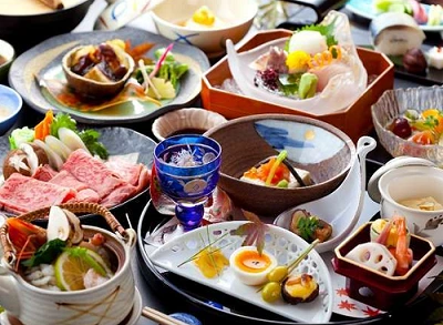 이 료칸의 특징은 석식, 그리고 조식을 객실에서 먹을 수 있다는 것. 한번쯤은 가이세키요리를 객실에서 먹어보고 싶지 않나요? 식사처에서 다른 투숙객을 신경 쓸 일이 없이 둘만의 공간에서 편안하게 가이세키요리를 즐길 수 있어요. 신혼 때로 돌아간 것처럼 여러가지 얘기를 나누면서 좋은 시간을 보내보세요.