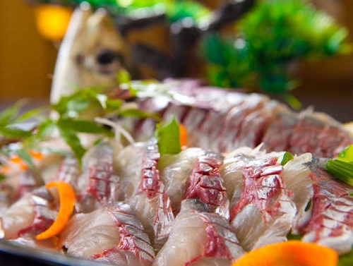이곳에서는 자기가 원하는 회, 그리고 전골요리를 선택할 수 있습니다. 회는 벳푸에서 유명한 칸아지(전갱이 중 한 종)나 이세에비, 복어 중에서 선택할 수 있으며, 전골요리는 이 지역의 브랜드 고기를 이용한 스키야키, 돼지고기 샤브샤브, 닭고기 샤브샤브 중에서 선택할 수 있습니다.