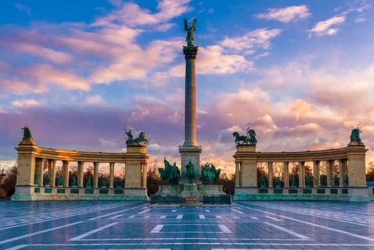 시민공원 입구에 해당하는 드넓은 광장은 '영웅광장'이라고 불립니다. 헝가리 건국 1000년을 기념하기 위해 지어졌다고 하는데요 광장 중앙에는 헝가리 건국의 아버지인 아르파드와 일곱 부족장의 기마상이 있고 하늘을 찌를 듯한 높은 기둥 위에는 천사 가브리엘의 조각상이 있습니다. 그리고 원형 기둥의 양옆에는 헝가리의 역대 왕과 영웅들이 조각되어 있어요. 그래서 이름 또한 영웅광장이라 불린답니다.
