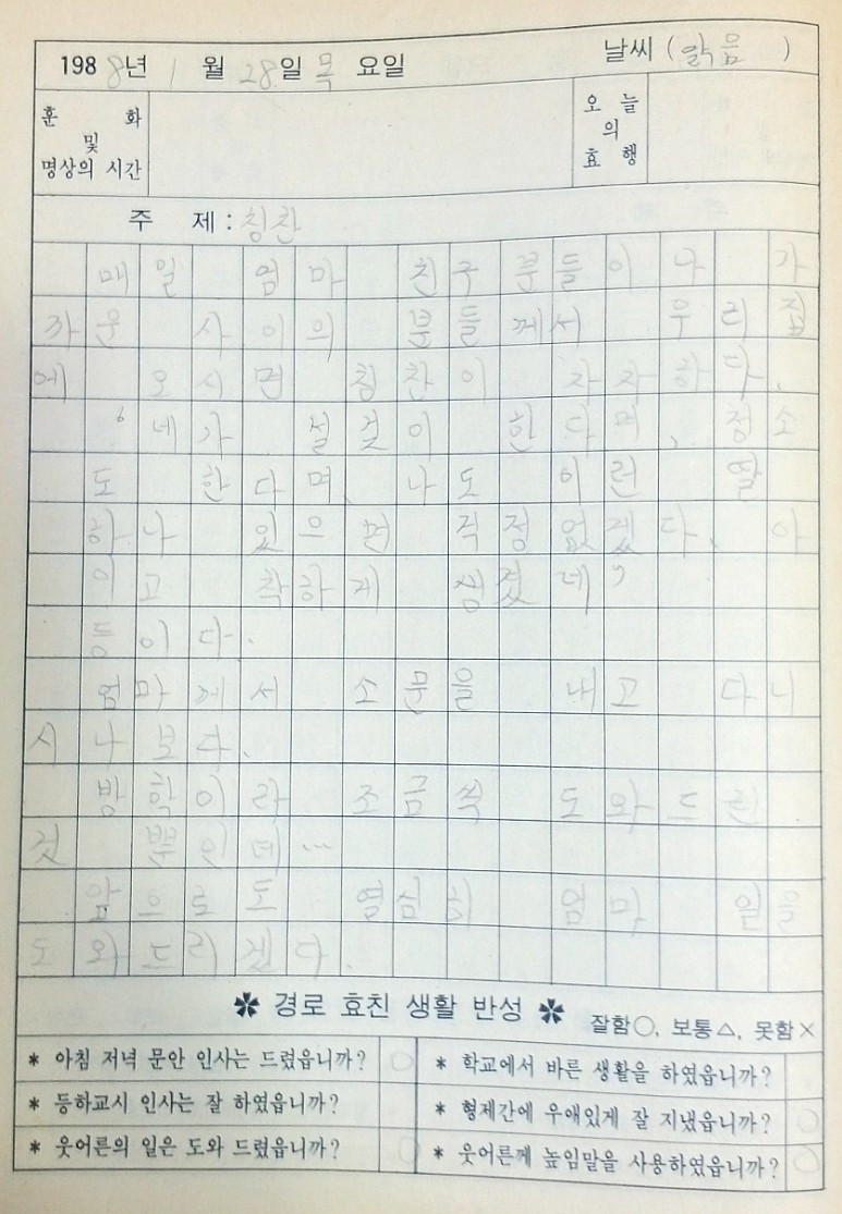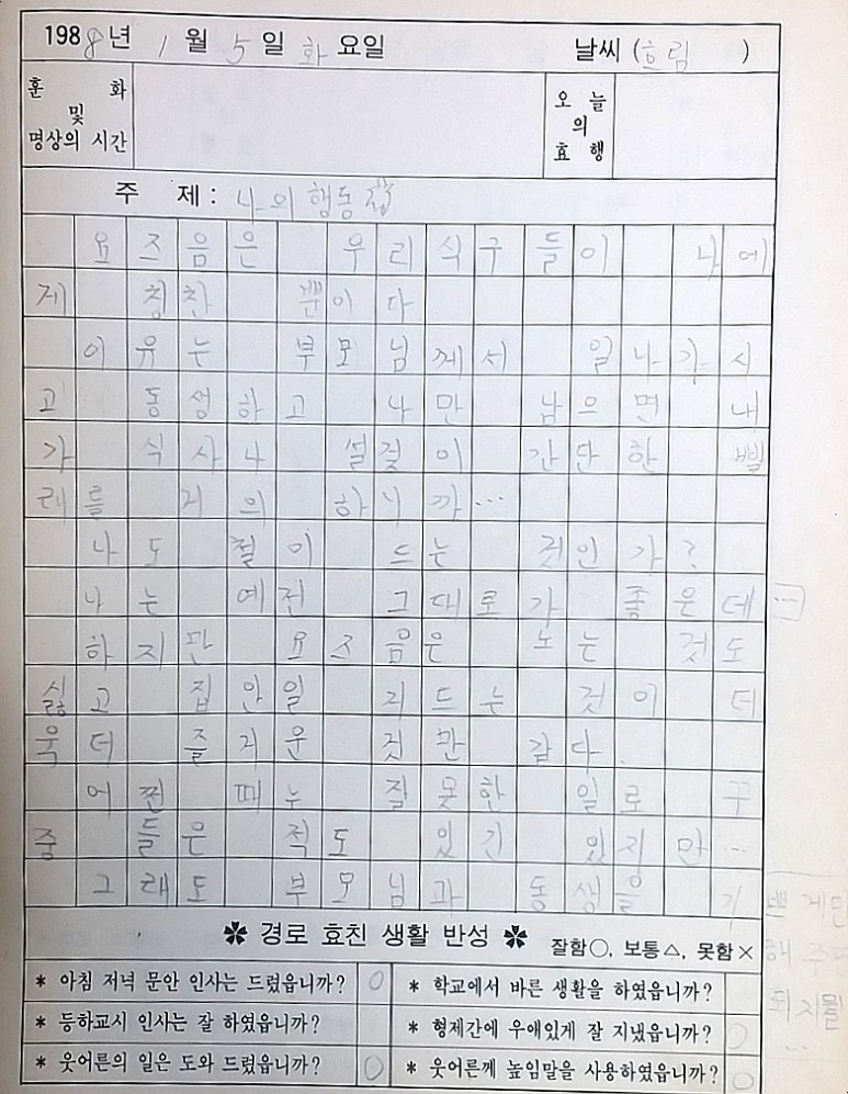 30년도 더 된, 나의 초등학교 일기장을 읽어본다.
