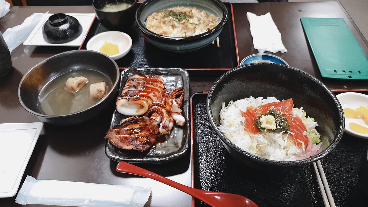 엄마와 나는 별 망설임 없이 메뉴를 골랐다. 나는 먹기로 했던 해산물 참치 덮밥[海鮮漬けマグロ丼 : 카이센즈케마구로동]을 골랐고, 엄마는 에노시마 덮밥[江の島丼 : 에노시마동]을 먹기로 했다. 에노시마 덮밥은 소라와 계란이 있어서 엄마의 식사로 미리 점찍어둔 메뉴였다.