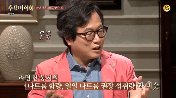 맛집 칼럼니스트로 활약하며 분식은 입에 대지도 않을 것 같이 깐깐함을 자랑하던 사람이 생글생글 웃으며 라면 CF를 찍고 있는 어색함.