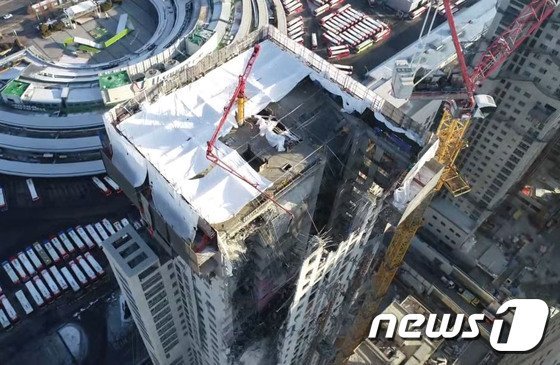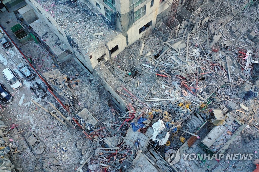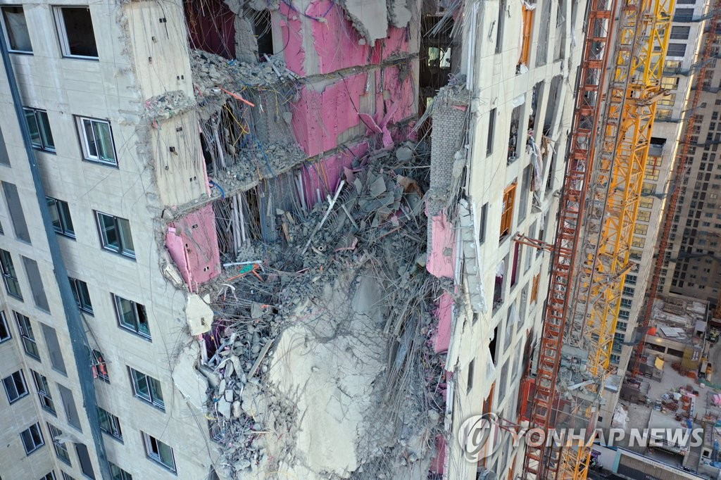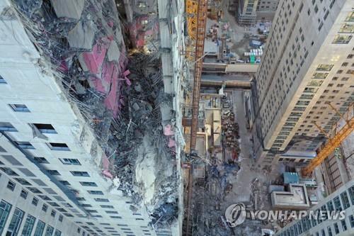 지난 11일 발생한 광주 서구 화정아이파크 신축 주상복합아파트 외벽 붕괴사고 현장 모습.