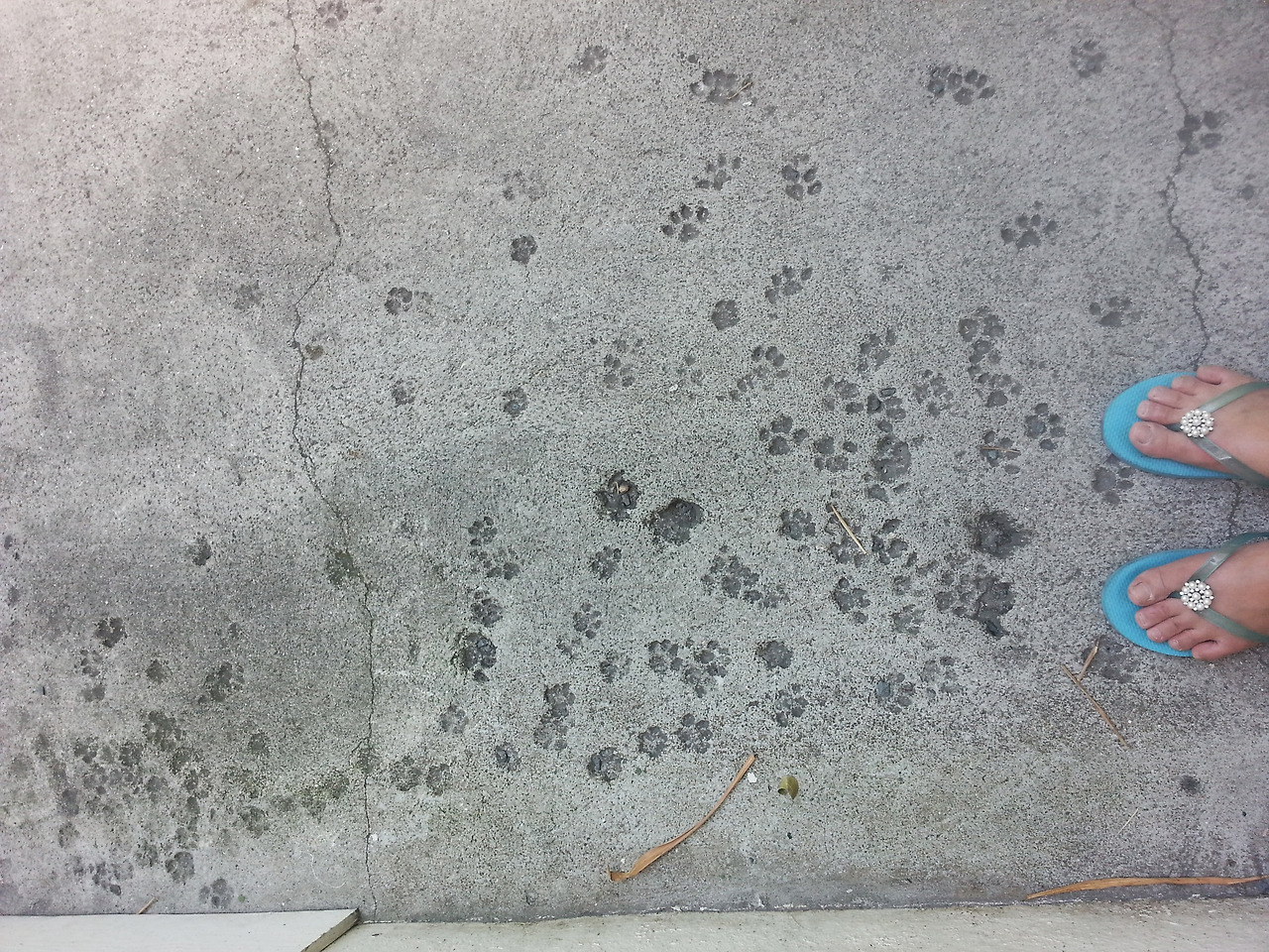 뜰부터 돌아보는데 고양이들의 발자국이 보였다