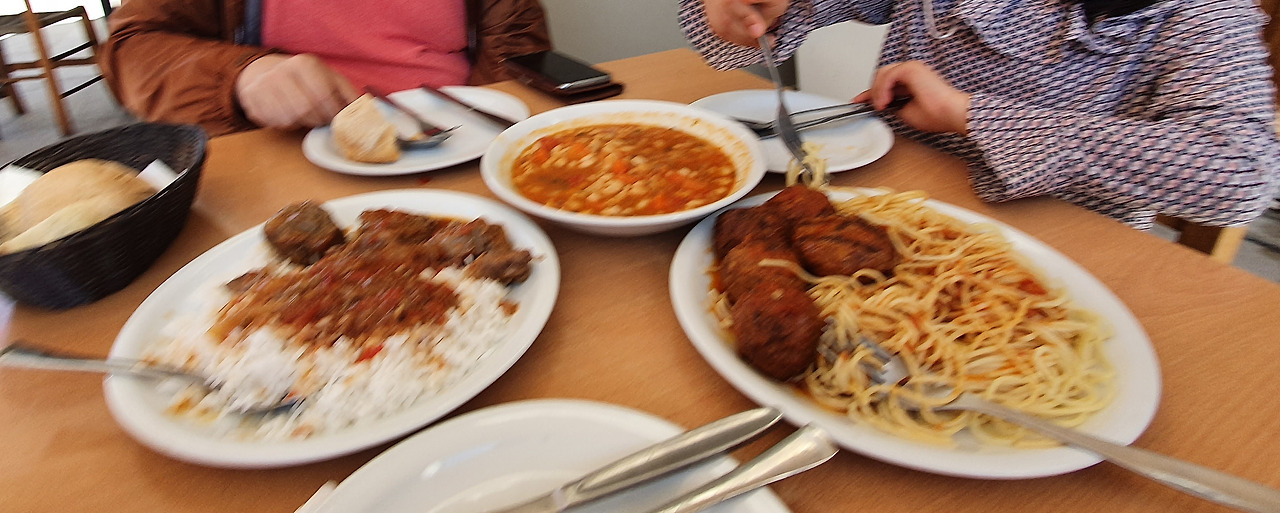 이번 여행에서 현지스러운 체험을 많이 못했던 나의 아쉬움을 조금이라도 달래준 곳은 레팀노의 가정식 식당이었다. 레팀노는 밥만 먹기 위해서 들렀는데 'Maria's home cooking' 팻말을 보자마자 이끌린 듯 들어갔다. 아마 식당 주인분 성함이 상호에 나오는 마리아일 것 같은데, 가정식이라 메뉴가 없는 곳이었다. 딱 봐도 메뉴를 설명해줘도 모를 것 같은 검은 머리 세 명을 보더니 주방에서 냄비 안의 요리를 보여주며 설명해주고 고르라고 했다. 거의 1인분씩만 남아있었기에 네 가지 요리 중 세 가지(미트볼, 비프스튜, 콩 수프)를 골랐는데, 파스타와 밥이 정말 수북하게 나왔다. 주인장께서 미트볼은 남은 게 1인분 조금 안 되었다고 생각했는지 다른 용도로 만들어둔 큰 덩이 하나를 더 넣어주었다. 어느 나라든 가정식은 그리운 맛이 느껴진다. 심지어 내가 그 문화를 잘 모르더라도. 그리고 솜씨도 있는 집이어서 비프스튜는 레시피를 알고 싶었고 분명 특이한 향신료 맛이 났는데도 거슬리지 않을 아슬아슬한 수준까지 들어가 있었다. 괜찮았냐고 물어보길래 비프스튜가 맛있고 야옹님이 미트볼을 좋아했다고 하니, 아이들은 다 (아마도 마리아의) 미트볼을 너무 좋아한다고 한다.
