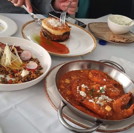 처음 간 곳은 아테네 아크로폴리스 박물관 근처 대로변 식당이었는데, 위치가 위치라 그리스 음식 치고는 살짝 가격대가 있었다. 무사카(라자냐 비슷한 요리)가 10유로 (싼 곳은 절반~2/3 가격, 비싼 곳은 12~13유로). 하지만 요리 세 접시, 페타브레드 2인분, 차지키(요구르트를 이용한 그리스 소스)를 더해도 40유로가 안 되었으니 영국은 물론이고 마요르카보다도 훨씬 저렴한 가격이었다 (물론 스페인 본토는 마요르카보다 훨씬 저렴하다고 한다). 차지키에는 오이, 허브, 식초 등이 들어가는데 상상했던 것보다 훨씬 상큼한 맛이었고 빵이랑 잘 어울리는 것은 물론이고 이후에 고기 요리를 먹을 때 느끼함을 잡아주었다. 새우요리는 사가나키(Saganaki)인데 토마토소스와 페타치즈의 꼬릿함이 잘 어울린 야옹님의 최애 요리였다. 무사카는 생각할 수 있는 맛이었고, 나와 남편이 맛있게 먹은 것은 바로 장어요리였는데, 장어와 렌틸콩(아마도?)의 조화가 환상적이었다. 아래 사진은 몇 점 먹고 나서 야옹님이 찍은 것.