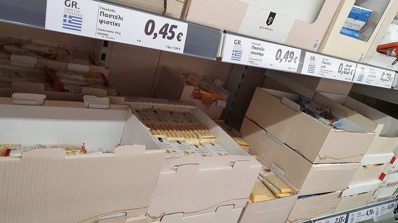 가장 좋았던 점은 과자. 그리스는 각종 견과류는 물론이고 깨를 과자에 많이 사용한다. 참깨스틱도 저렴하고 맛있고, 무엇보다 깨나 견과류를 꿀로 굳혀서 만든 과자가 있는데 우리나라 강정과 상당히 비슷하다. 가격도 저렴해서 여행 다니는 내내 배고프면 애용했고, 처음 리들에서 더 많이 사 오지 못한 것이 아쉽다. 공항에도 선물용 과자를 팔지만 가격이 상당히 비싸니 그리스 마트에 들리면 과자는 가벼운 선물을 겸해서 여유 있게 사도 좋을 것 같다.