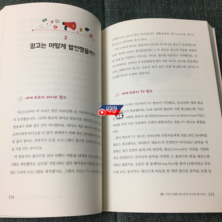 이 책에서 부록처럼 소개되는 '세계의 광고인' 페이지에서는 데이비드 오길비, 레오 버넷, 빌 번박 같은 전설적인 광고계 인사들과 만날 수 있다. 또한 '토론해 봅시다'에서는 '특정 기업 제품의 불매운동에 동참한 적이 있나요?'와 같이 광고를 매개로 친구들과 심도 있는 이야기를 나눌 수 있다.
