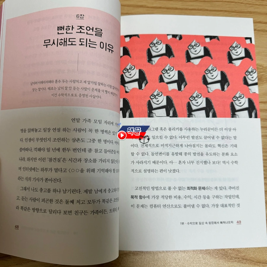 저자는 또 많은 사람들이 수학이라고 하면 숫자를 세고 나누고 제곱근을 찾는 일 정도로 생각하지만, 수학은 그런 지루한 반복을 위한 학문이 아니라고 이야기했다. 수학을 꼭 배워야 할 필요는 없지만 분명한 건, 지금 세상 속 일상은 수학의 근방에서 벗어나지 않는다는 것이라고 말했다. 그렇다면 수학과 일상의 연결 지점에서 수학을 이해하는 노력 정도는 필요하지 않을까.