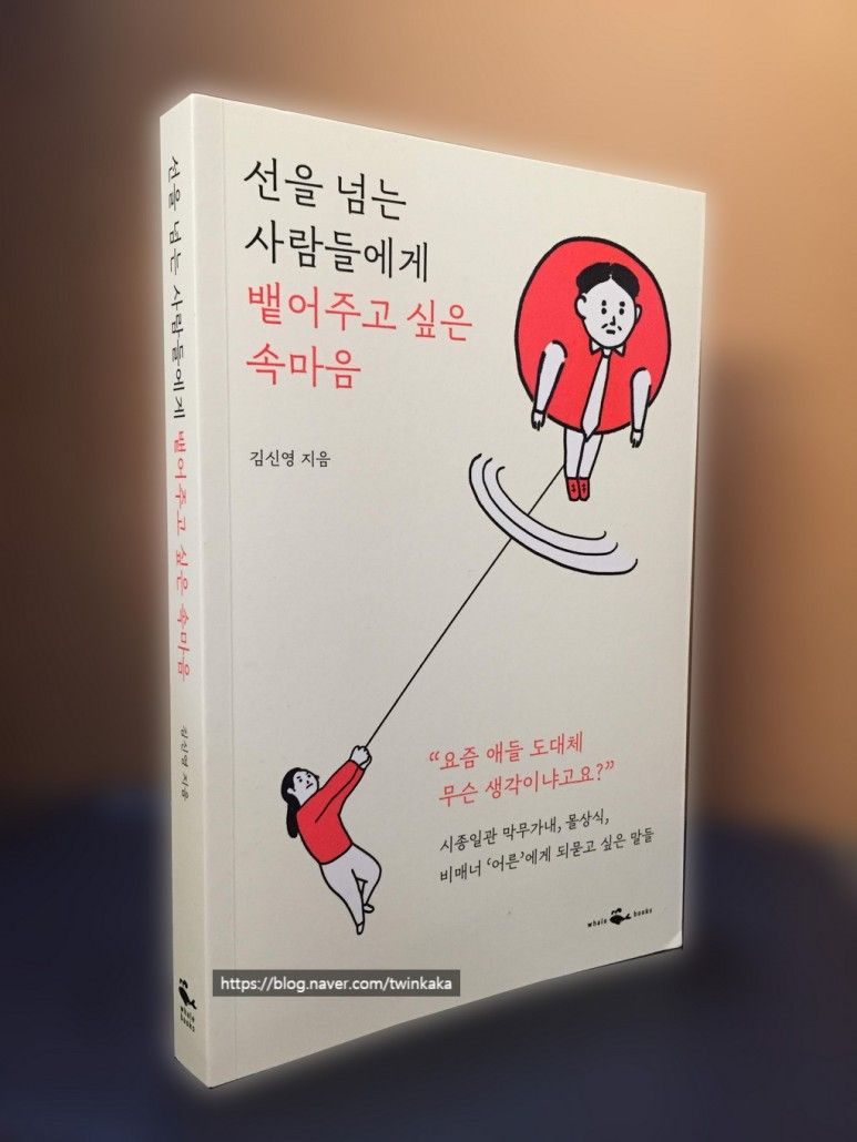 <선을 넘는 사람들에게 뱉어주고 싶은 속마음>이란 제목을 처음 봤을 때 어떤 내용일까 궁금했다. 이 책의 저자는 자신이 평범한 보통 사람이라고 소개하면서 시종일관 막무가내, 몰상식, 비매너 '어른'에게 되묻고 싶은 말들을 모았다고 책을 펴내게 된 이유에 대해 설명했다.