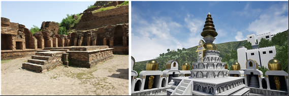 유네스코 세계문화유산인 파키스탄의 탁티바히 대탑(大塔)의 원형은 가상현실 공간 속에 재현시키는 것이 우리의 주요한 목표였다. 이를 시각화하기 위해 가상현실(Virtual Reality) 기술을 적용했다.