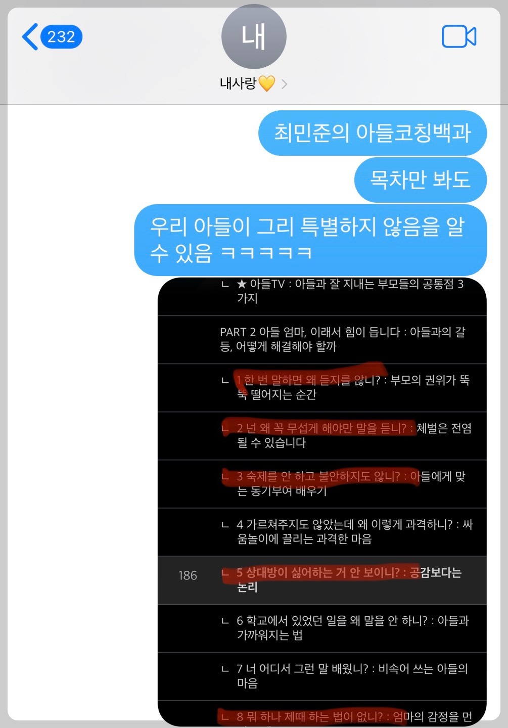 그 날도 연산 문제집 두 페이지를 한 시간 동안 온 몸을 베베 꼬아가며 풀고, 양치하고 침대에 누울 때까지 30분이 걸렸던 밤이었다. 인내심으로 눌러 참은 말들이 가득차서 잠이 오지 않았다. '뭔가 잘못되고 있어.' 칭찬으로 신이 나서 의욕적으로 생활하는 모습을 기대하고 있는데, 나도 아이도 악순환의 굴레에 빠진듯한 실패감에 답답했다. 육아가 풀리지 않을 때 늘 그렇듯 책을 찾는다. 뒤적뒤적 밀리의 서재 베스트 목록을 훑어보는데 <최민준의 아들 코칭 백과>라는 제목이 눈에 띈다. 목차를 보고 놀랐다. 전부 내가 하던 잔소리들이다.