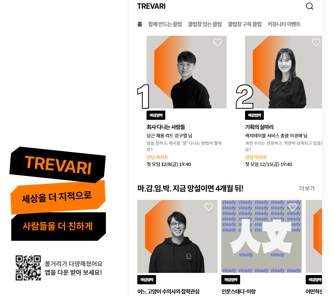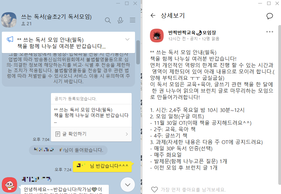 유튜브에 '독서 모임'을 검색했었다. 독서 모임을 할 수 있는 다양한 방법과 플랫폼이 있었다. 당근마켓 어플에서 지역 소모임으로 독서 모임을 시작한다거나 '트레바리'라는 플랫폼으로 3~4개월 코스의 독서 모임을 유료로 신청하는 방법도 있었다. 모두 해보고 싶지만 선뜻 용기가 나지 않았다. 지인들과 해보려고도 했다. 아이를 비슷하게 낳은 교대 동기 5명과 밤중에 비대면으로 해볼까도 싶었다. 하지만 괜스레 아는 사람과 모임을 해서 끌어간다는 게 오히려 부담이 되었다.