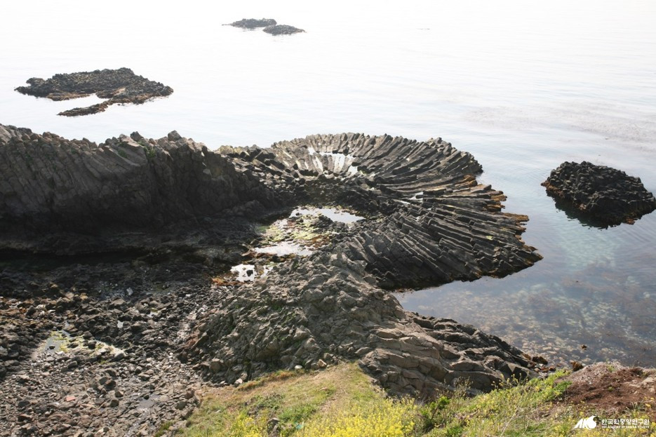송대말 등대를 기점으로 아래로 내려오며 양남 주상절리를 찍기로 계획했다. 궁둥이 무거워 한 곳에서 자리 뜨기 어려운 우리의 여행 감성으로는 모든 스폿을 찍기 불가능하다. 평균적으로 하루에 1~2곳 정도 다니고 있다. 그럼에도 가볼 만한 곳이 더 있는지는 빠삭하게 조사하고, 이변이 생겨 한 두 곳으로 모자랄 수도 있으니 계획은 야심 차게 잡는다. 저 멀리 감은사지 3층석탑의 모양을 본뜬 등대가 기와지붕 2층 건물 위에 솟은 모습이 보인다. 그 옆으로 평범한 모양의 하얀 등대가 나란히 서 있다. 이제는 빛을 내지 않는 송대말등대다. 건물은 빛 체험 전시관으로 쓰이고 솟은 등대가 이곳 감포 바다를 비춘다. 아이들이 차에서 내리자마자 내달린다. 바다를 보면 달려가고픈 마음은 본능인 건가. 늘 바다를 보면 일렁이는 파도에 마음도 들썩이며 달리고 싶다. 등대에 가까이 갈수록 저 아래로 깎아 내지르는 풍경이 보인다. 기대하지 않았던 풍경에 절로 '와'한다. 가까운 바다는 맑아서 아랫 돌이 훤히 비치고 멀리는 햇살로 보석밭이다. 배가 가득 정박해 있는 감포항으로 유유히 배 한 척이 들어간다. 그리고 하이라이트는 새하얀 갈매기가 점박이처럼 붙어 있는 거무스름한 바위다. 거무스름? 제주도도 아니고 바위가 왜 검단말인가? 경주 바다에는 머나먼 과거(공룡 이야기 나올 때나 들어봄직한 무려 신생대 시절)에 생긴 주상절리가 있다.