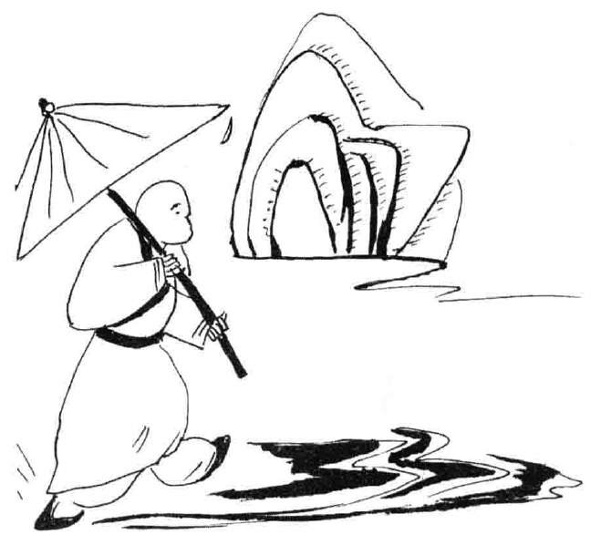 스님이 우산을 펼치니——머리도 없고 하늘도 없네
