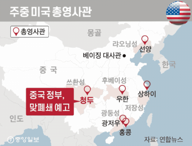 2. 이번 기회에 눈엣가시 같았던 주 청두 미국 대사관도 처리했네