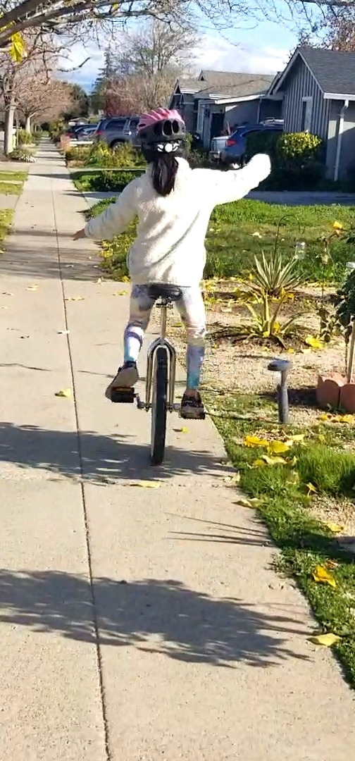 외발자전거를 타는 딸