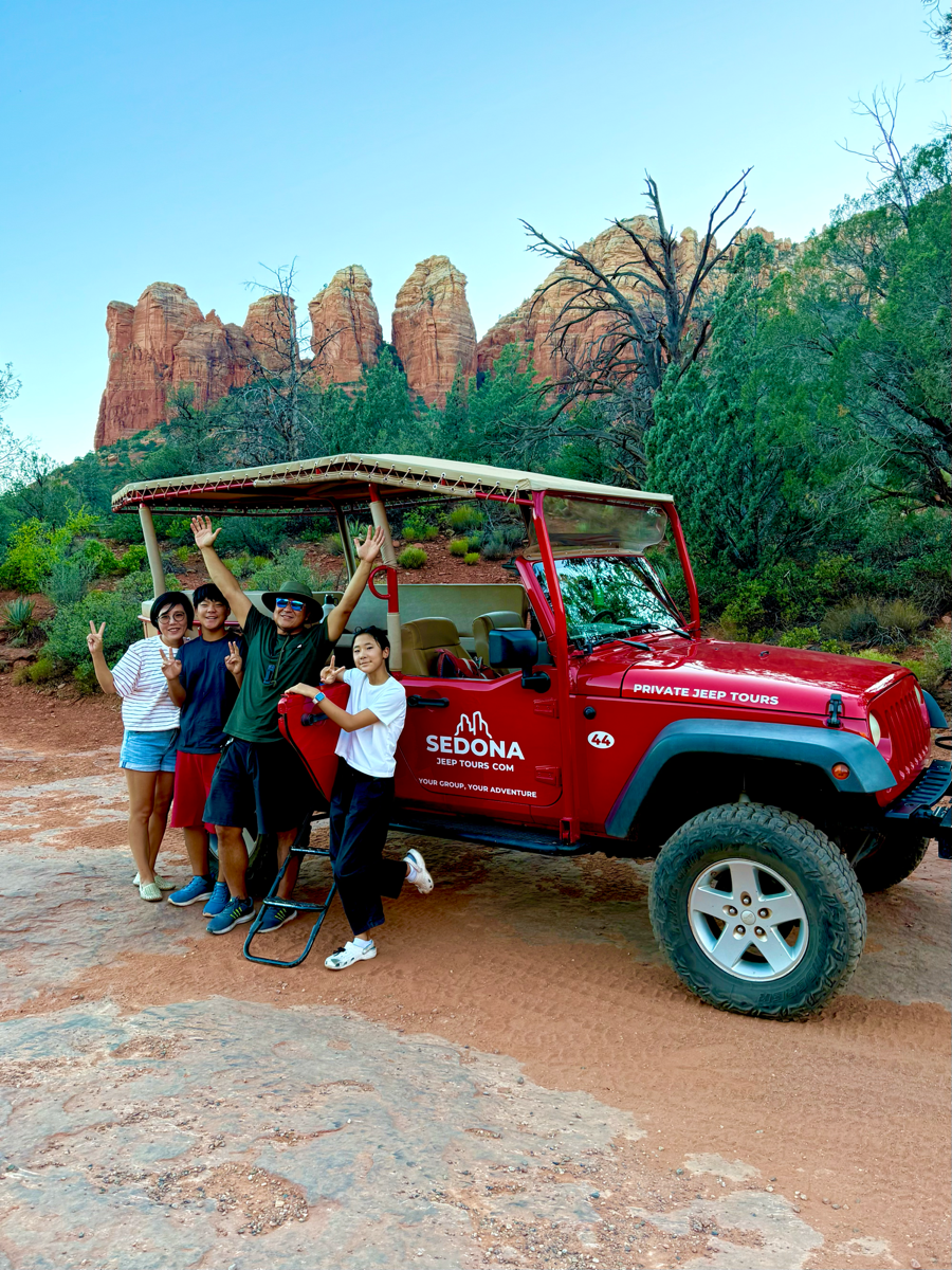 빨간색 지프차를 타고 울퉁불퉁한 새도나 산길을 달린다. 분명 나는 차를 타고 있는데 어릴적 놀던 방방이에 앉아 있는 느낌이다. 떨어질까봐 안전벨트와 손잡이를 죽을힘을 다해 잡고 있지만 나머지 세사람은 신이 났다. 막내딸의 긴머리는 귀신처럼 헝크러져도 아이는 "와~ 이거 너무 재미있어"라고 좋아한다. 나를 닮아 무서운 걸 질색하는 아들도 "지프차는 너무 좋았어요"라고 한다. 이럴때가 여행하면서 가장 뿌듯한 순간이다. 이런 순간이 자주 오면 힘들어도 신이나서 여행을 할 것같은데 실상 그리 자주 오지 않는다. 대부분은 "언제까지 해야 돼요?", "또 사진 찍어요?", "우리 호텔엔 언제 가요?"라는 불평과 불만이 더 많다.
