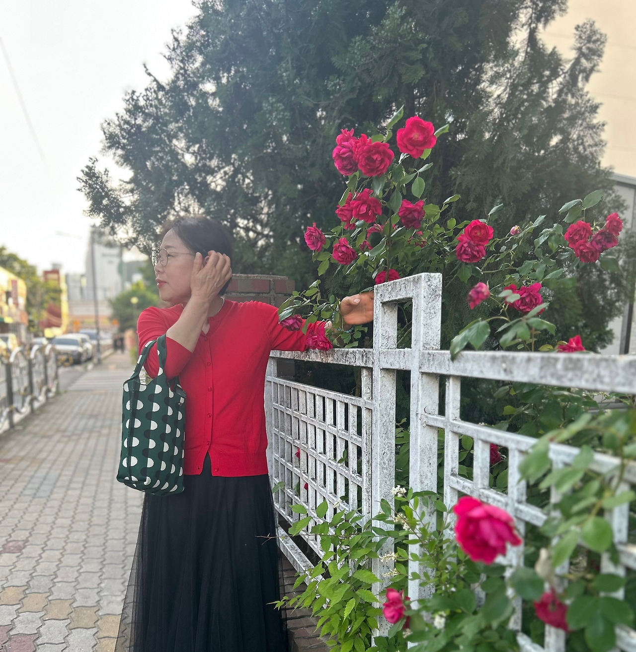 아마추어 사진작가의 한마디에 그녀는 살짝 귀찮아하면서도 이내 소녀처럼 설레는 미소를 장착하고 장미꽃 옆에 서서 자연스럽게 포즈를 취한다.